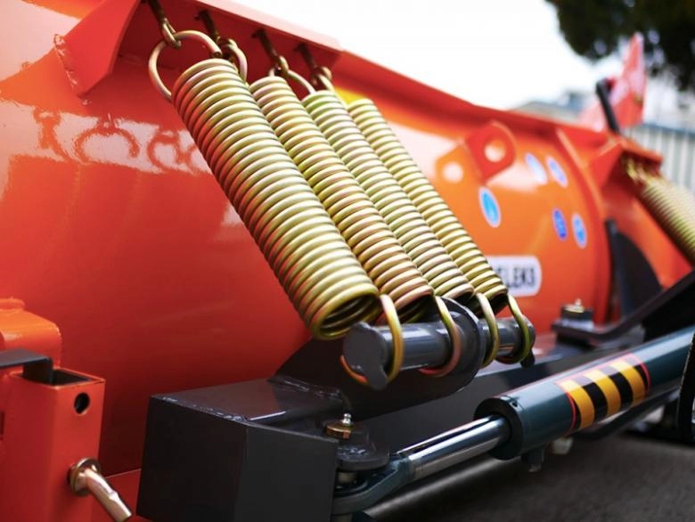 A biztonságos munkavégzést a 6 db ütésálló rugó teszi lehetővé, amely akadályba ütközés esetén visszaállítja az alap munkahelyzetbe a tolólapot. Munkavégzés során a lap 30 fokos szögállítását jobbra és balra a két hidraulikus munkahenger (Márka: Rebos-Mantova) segítségével lehet beállítani.