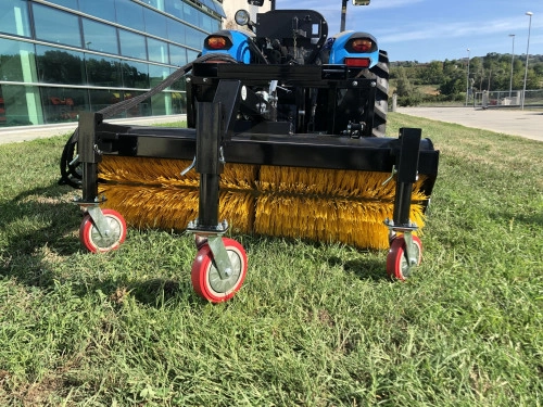 GEO SD 120 - 160 - 200 seprőgép adapter traktorokhoz és munkagépekhez. A gépek 3-pont függesztéssel, 3 db munkakerékkel, 1 db seprőfejjel és targoncavilla befogadásására kialakított nyílással vannak ellátva. A seprőgépek kivállóan alkalmazhatóak utak, parkolók, beton, aszfalt stb. területek tisztán tartására, takarítására.