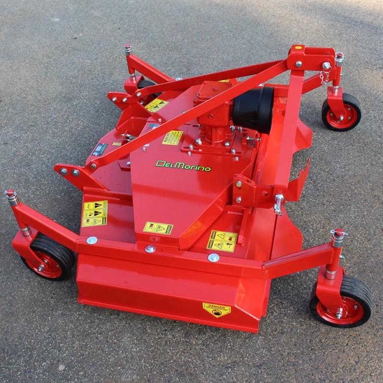 Del Morino FMRD 120-150-180-215 igényes, olasz gyártmányú fűnyíró adapter. Előre szerelhető, hátsó irányú szórással 12-70 LE teljesítményű traktorhoz.