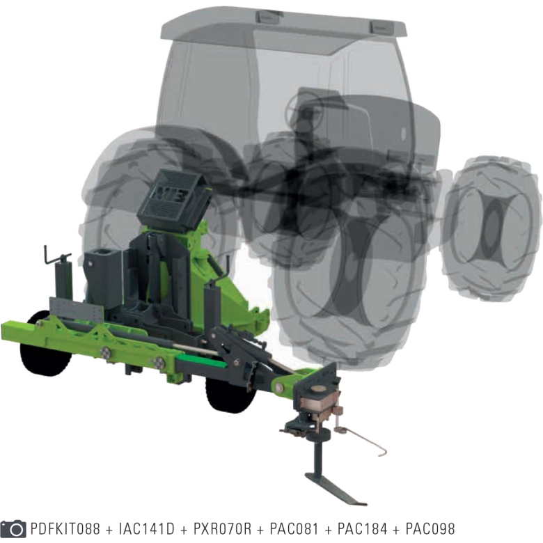 Hidraulikus oldalmozgatás és döntés alapfunkciókkal. Az alapfelszereltség nem tartalmazza a hidraulika vezérlőegységet és tömlővezetéket, valamint a traktorhoz történő csatlakozáshoz szükséges szerelőlapot.