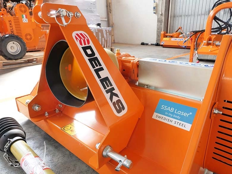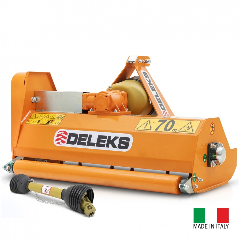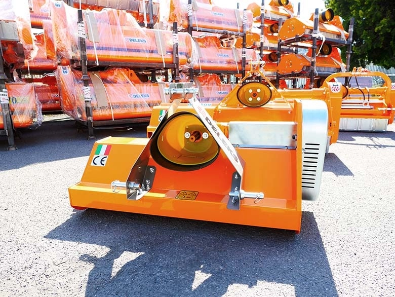 Olasz gyártású DELEKS APE 100 - 120 igényes kivitelű, kompakt, kalapáccsal szerelt szárzúzó-mulcsozó amely alkalmas Solis, New Holland Boomer 25-30 vagy TI13, John Deere 1-2 sériás, japán pl. Kubota B és BX, Iseki TM–TH, Yanmar stb. 12-30 LE telesítményű kistraktorokhoz.