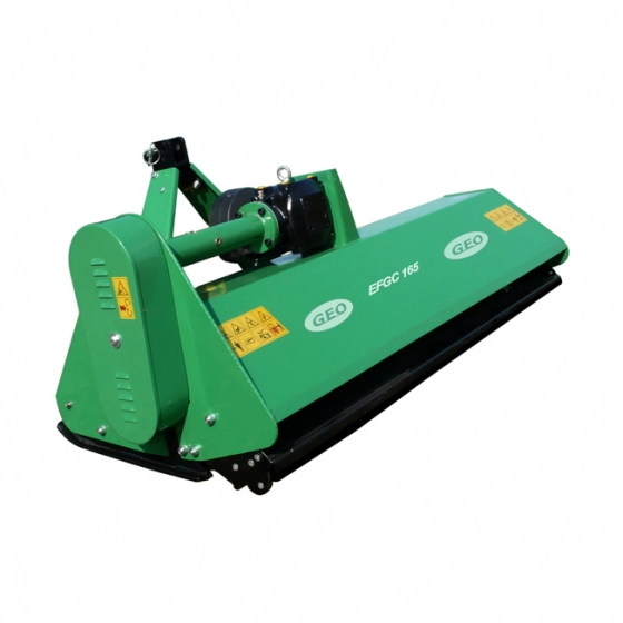 A GEO EFG széria vízszintes tengelyű Y-késes vagy lengő zúzókalapácsos szárzúzó-mulcsozói ideálisak a gyomos, gazos területek tisztítására és gyepfelületek igényes ápolására. A talajkövetés és vágási magasság a kétoldali csúszótalpakkal és a csapágyazott, állítható rögzítésű acélhengerrel történik.