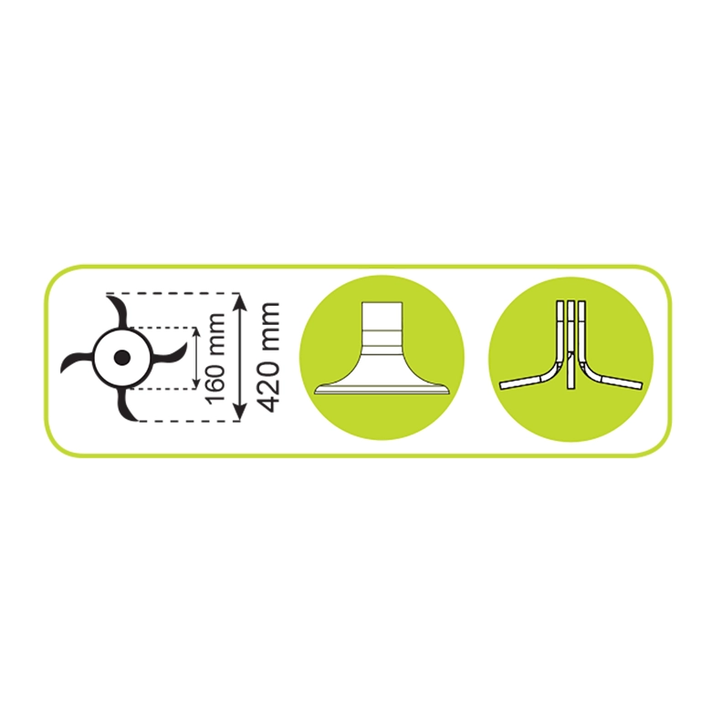 - Rotorátmérő 160 mm, vágási átmérő 420 mm (TSP200-220-250 típusok),