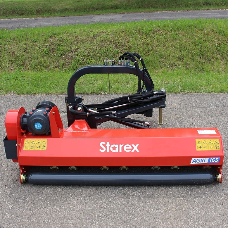 STAREX AGXL 125-145-165 rézsű vágására alkalmas hidraulikus oldalmozgatással és dőlésszög állítással rendelkező szárzúzó mulcsozó. Az alapfelszereltség már tartalmazza az igényes kivitelű zúzókalapácsokat (igény esetén Y-késekkel is szerelhető). Hátsó függesztésű, kardántengely meghajtású. Ideális munkagép árokpartok, útpadkák, gyomos, gazos területek, gyümölcsösök tisztítására és bokrok, sövények vágására 20-50 LE teljesítményű traktorokhoz.