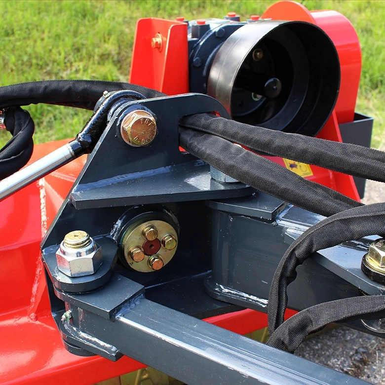 - Szabványos 1-es kategóriás 3-pont függesztés hidraulikus kitolással és szögállítással