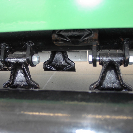 Vasöntvény házú, erősített hajtóműve fix áttételű, szabadonfutóval szerelve. Oldallehajtása ékszíjas kivitelű. A talajkövetés és vágási magasság a kétoldali csúszótalpakkal, és a csapágyazott, állítható rögzítésű acélhengerrel biztosított. Elektronikusan kiegyensúlyozott forgórészének magas fordulatszáma a tökéletes vágás biztosítéka. A biztonságos munkavégzést CE szabvány szerinti védőburkolatok szavatolják.