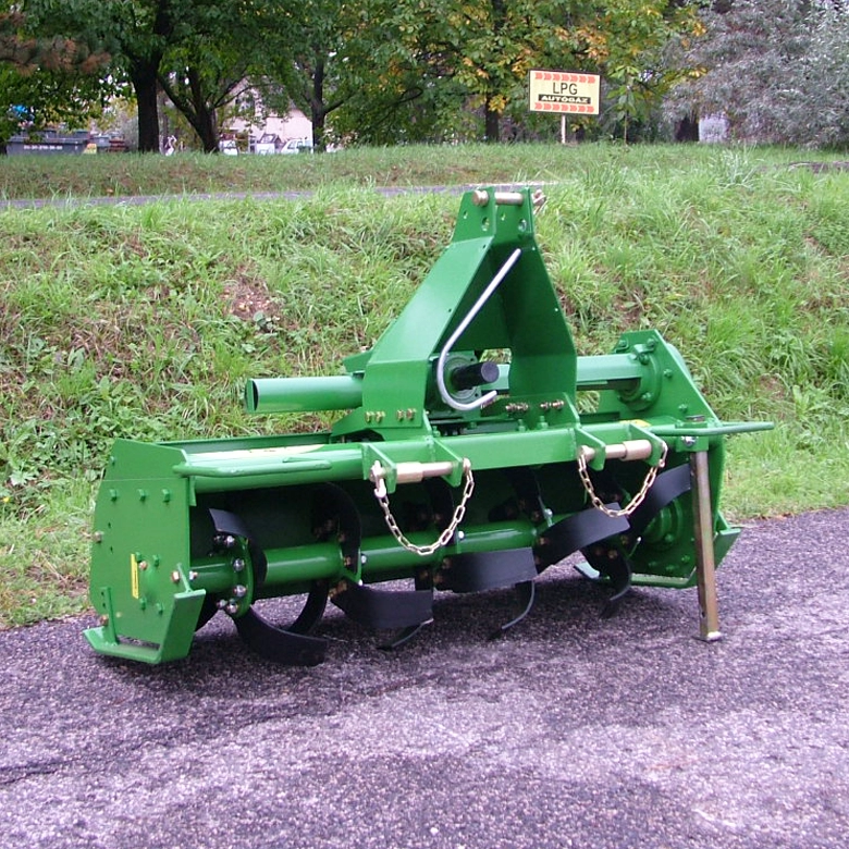 GEO TL 95-135 talajmaró, 25-40 LE teljesítményű traktorokhoz. Vasöntvény házú hajtóműve fix áttételű, lánchajtásos oldallehajtása automata láncfeszítésű. Egységenként négy darab marókéssel szerelve. A munkamélység kétoldali csúszótalpakkal állítható.