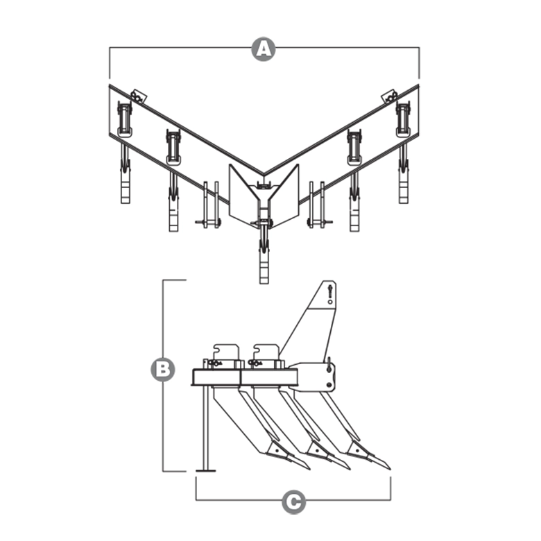 Műszaki adatok Kések száma : 7 db Kések szélessége : 50 mm Munkamélység : 800 mm Munkaszélesség : 3.300 mm Tömeg : 1.300 kg Gépigény : 170-200 LE Szélesség (A) : 3.250 mm Magasság (B) : 1.757 mm Hosszúság (C) : 900 mm