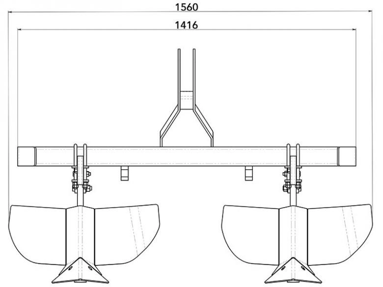 A két töltögető fej távolsága és lapjainak szöge állítható. A sorközművelő 1.420 mm széles és 80x80 mm anyagvastagságból készült. Szabványos 3-pont, 1-es kategóriás függesztéssel szerelt.
