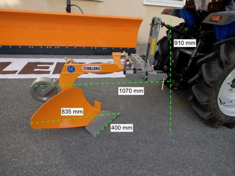 DELEKS DP20 egyfejes eke, 20-35 LE teljesítményű teljesítményű japán és más típusú kistraktorokhoz. Egyszerű és erős szerkezet, kiváló minőségű acélból. Méretének köszönhetően akár kisebb kertek és mezőgazdasági területek megművelésére is kiválóan alkalmas. Az eke késes csoroszlyával és mélység szabályozó támasztókerékkel (alaptartozék) van ellátva. A művelési mélység maximum 16-25 cm. Súlya 60 kg, 3-pontos, I. kategóriás (ø 19-22 mm) függesztéssel van szerelve.