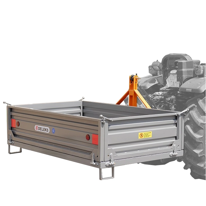 DELEKS T szállító ládák, 20-70 LE traktorokhoz. Acélból készült robosztus felépítés jellemzi. A láda hátrafelé mechanikusan billenthető a billenőkar meghúzásával, az oldalfalak belső bordákkal vannak megerősítve és három irányba lenyithatóak. 3-pontos, 1-es és 2-es kategóriás függesztéssel van szerelve.