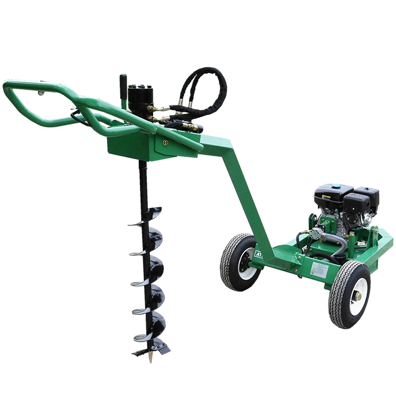 GEO ATV gödörfúró adapter quadokhoz, ATV-ékhez. Különböző fúrófejek 12, 15, 20, 25 és 30 cm átmérővel szerelhetőek. Az eszköz 9 LE teljesítményű motorral szerelt.